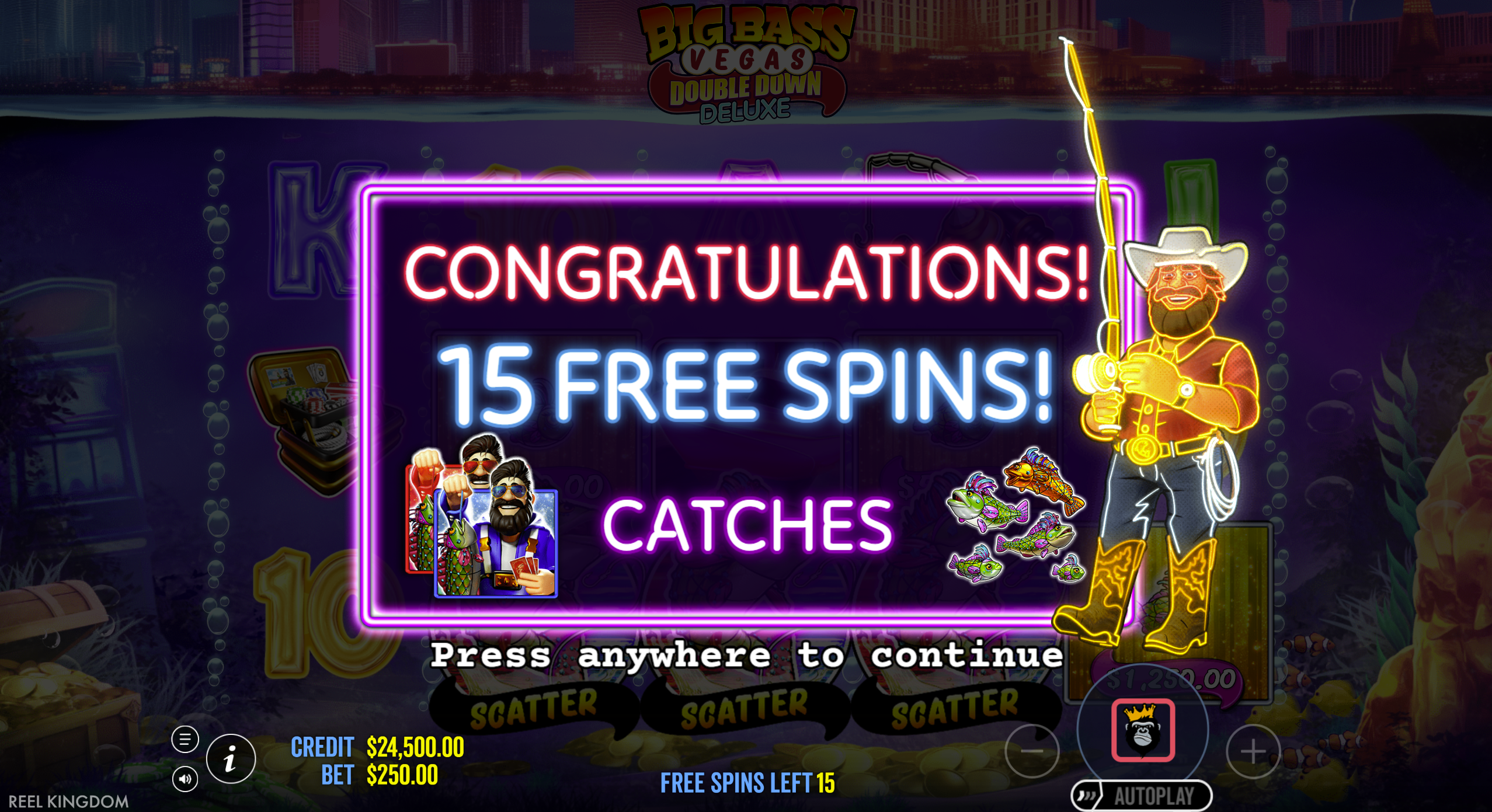 - Guaranteed Persistent Angler: Fisherman Wild remains fixed on reel 5 throughout free spins ensuring automated collections